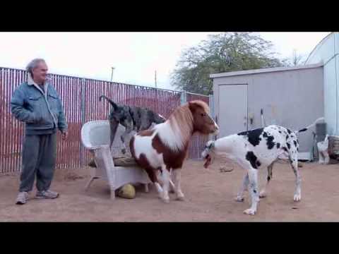 Feature 13yr old Miniature Horse Saber with distractions... namely his Great Dane perd.